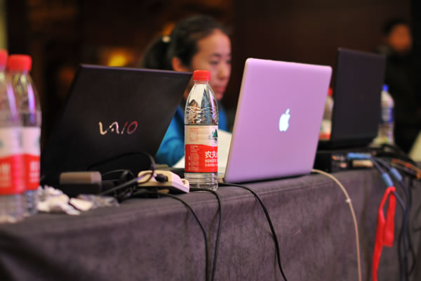 沈陽青旅呼叫中心網絡部負責會務組音樂燈光及舞美嚴陣以待