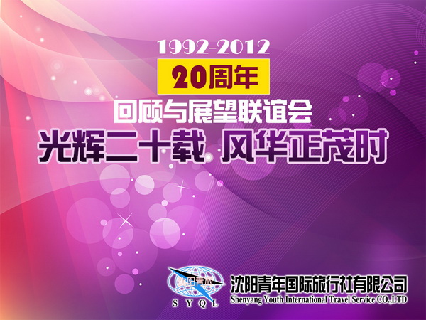 2013年3月12日,“光輝二十載·風華正茂時”沈陽青年國際旅行社成立二十周年回顧與展望聯(lián)誼會在沈陽北約克維景國際大酒店7樓宴會廳隆重舉行。 社會各界領導、旅游行業(yè)同仁到會慶祝。