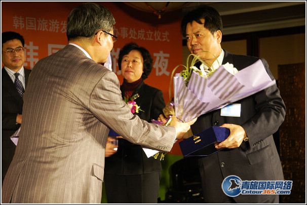 韓國觀光公社向沈陽青旅頒發(fā)感謝牌,沈陽青旅董事長倪琛善先生上臺領(lǐng)獎