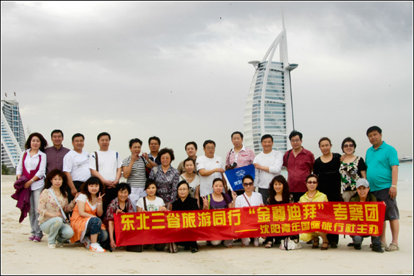 2009年4月11日,由沈陽青年國際旅行社有限公司組織的東北旅游業(yè)界赴迪拜考察團 由沈陽桃仙國際機場啟程,以旅游者的眼光重新打量了一下這個充滿著奢華和品味的國度,考察團一行26人,由沈陽青旅董事長倪琛善帶隊,全程共計5天