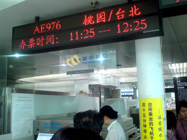 2009年8月31日,沈陽青旅臺灣直航團(tuán)首發(fā),本團(tuán)是南航CZ3011沈陽直飛臺北的第一架航班,飛行時間3個半小時,沈陽臺灣旅游正式進(jìn)入直航時。