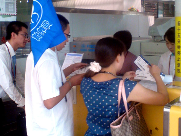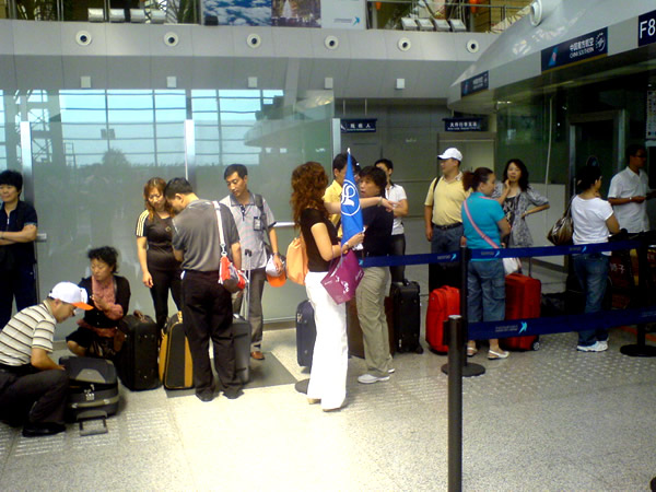 沈陽青旅“海峽情”臺灣旅游團(tuán)正在辦理登機(jī)手續(xù)