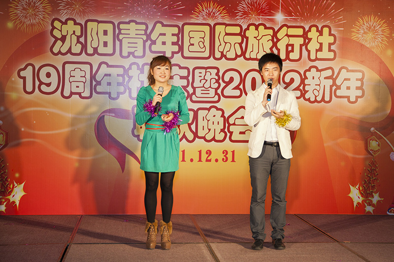 沈陽(yáng)青年國(guó)際旅行社有限公司19周年社慶暨2012年新年聯(lián)歡晚會(huì)于2011年12月31日在沈陽(yáng)新世界酒店隆重舉行,全公司200余名員工齊聚一堂,共同慶祝公司19歲的生日。全體員工精心準(zhǔn)備了豐富多彩的文藝節(jié)目,向社慶獻(xiàn)禮。