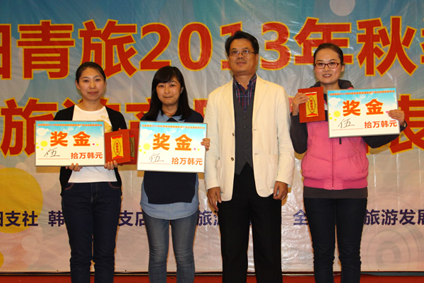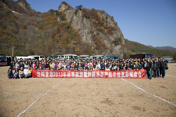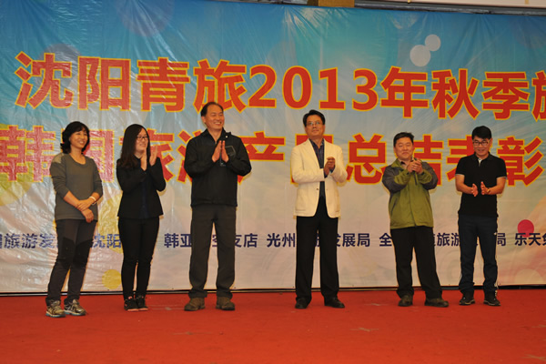 2013年10月12日-13日,沈陽(yáng)青旅2013年秋季旅游暨韓國(guó)旅游產(chǎn)品總結(jié)表彰聯(lián)歡會(huì)在本溪關(guān)門山、同泉溫泉度假村舉行。韓國(guó)旅游發(fā)展局社長(zhǎng)樸正夏、韓亞航空支店長(zhǎng)金珍、韓國(guó)欣欣旅行社總經(jīng)理金龍渙、韓國(guó)新羅免稅店所長(zhǎng)金東元、韓國(guó)樂(lè)天免稅店劉康妮等韓國(guó)各界領(lǐng)導(dǎo)、同業(yè)及友人到會(huì)同慶。