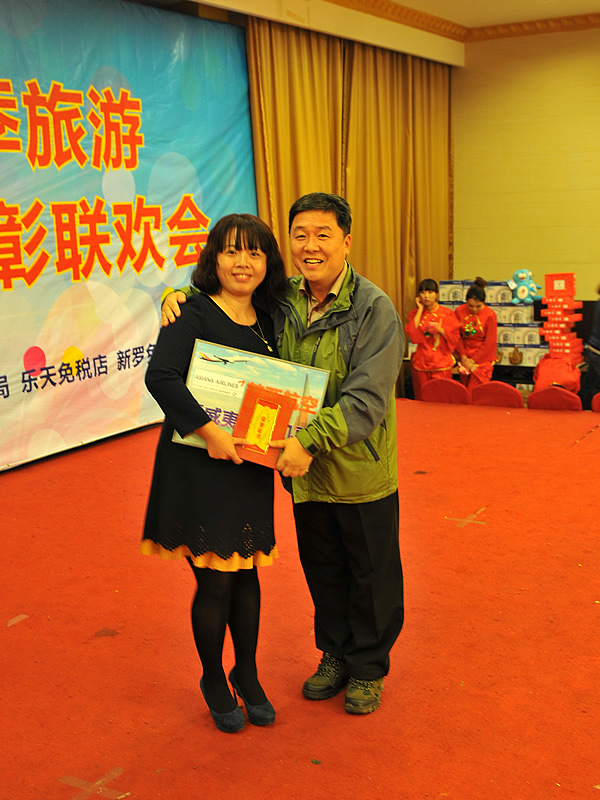 韓國(guó)旅游發(fā)展局社長(zhǎng)樸正夏、韓亞航空支店長(zhǎng)金珍、韓國(guó)欣欣旅行社總經(jīng)理金龍渙、韓國(guó)新羅免稅店所長(zhǎng)金東元、韓國(guó)樂(lè)天免稅店劉康妮、沈陽(yáng)青旅董事長(zhǎng)倪琛善慶祝表彰大會(huì)勝利召開(kāi)