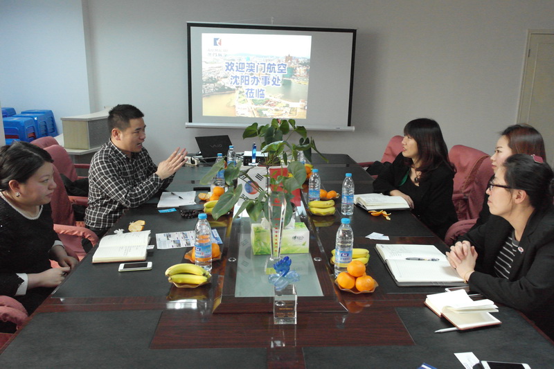 3.11號,澳門航空公司沈陽營業(yè)部文德強總經(jīng)理攜航線操作來蒞臨我公司,雙方就近期泰國局勢影響赴泰旅游、臺灣游火爆沈城等問題進行溝通。另外在2014年新航線上,雙方達城共識,共同打造新思路,新產(chǎn)品,新方向。