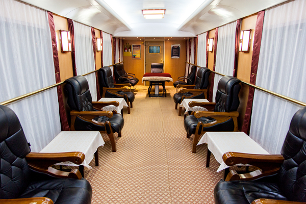 2015年1月3號,新年的伊始,沈陽青旅打響了15年旅游市場的第一炮。2015青旅號豪華觀光列車正式啟動,首發(fā)團(tuán)駛?cè)腴L白山。青旅號作為豪華觀光列車,絕對的實至名歸,全車配備64張軟臥,每節(jié)車廂都配備相應(yīng)的多功能活動車廂和娛樂車廂,在列車上餐車、小型會議室、全自動麻將機(jī)、卡拉OK、座談室等一應(yīng)俱全,更有高級包廂,2人一間并配有獨立衛(wèi)生間。