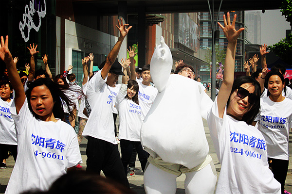 2015年4月26日下午,由沈陽青旅獨(dú)家策劃的周末街頭快閃活動在沈陽中街大悅城門前廣場火爆舉行,主持人大兵從天而降更是引爆了現(xiàn)場本就熱烈的氣氛,活動現(xiàn)場熱鬧非凡,給每一位經(jīng)過中街的行人留下了深刻的印象。