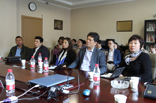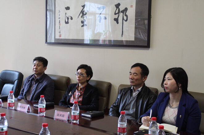 吳興坤副局長(zhǎng)(左二)、趙英超秘書(shū)長(zhǎng)(右二)、李雪鵬處長(zhǎng)(左一)聽(tīng)取匯報(bào)