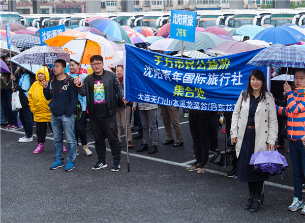 沈陽青年國際旅行社做為承辦單位之一,組織了15輛大大巴,800多位市民免費游覽了大連天門山,本溪龍溪谷,丹東花脖山!