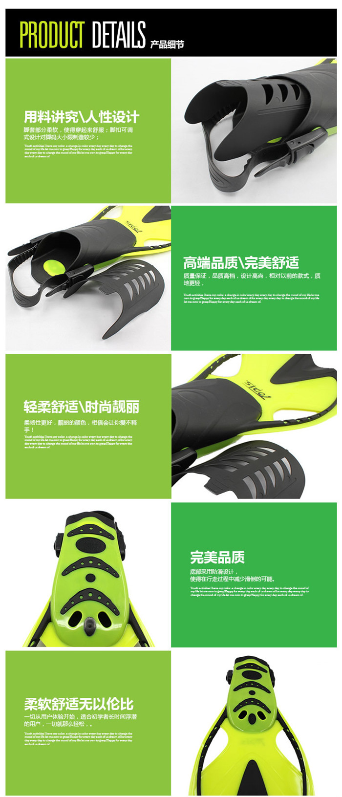 【介紹】:最新推出的熱門可調(diào)式浮潛游泳腳蹼,全新視覺,輕便快速設(shè)計,物美價廉。多吼及流線設(shè)計,使用排水性好,在增強(qiáng)推力的同時更加省力,輕松自如;腳套部分柔軟,使得穿起來舒服;腳扣可調(diào)式設(shè)計對腳碼大小限制造較少;底部采用防滑設(shè)計,使得在行走過程中減少滑倒的可能。全外資企業(yè)出品產(chǎn)品,質(zhì)量保證,品質(zhì)高檔,設(shè)計高尚,相對以前的款式,質(zhì)地更輕,柔韌性更好,靚麗的顏色,相信會讓你愛不釋手!