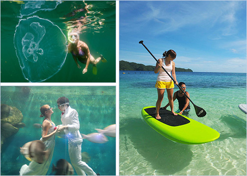 在這里,您可以享受簡(jiǎn)單而純凈的生活,潛水、游泳、散步,一切的活動(dòng)都自然地把陽(yáng)光、海水、沙灘很好的結(jié)合了在一起。住在這里,一切的過(guò)往和未來(lái)都變得不如現(xiàn)在重要。安心度過(guò)一個(gè)浪漫的海邊蜜月,在藍(lán)天碧水之間,讓愛(ài)情延續(xù),讓浪漫永恒。